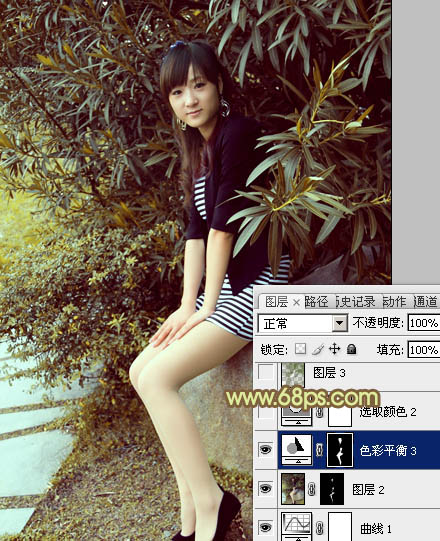 Photoshop给树林美女加上柔和的古典褐色调(7)