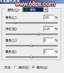 2、创建可选颜色调整图层,对红、黄、绿、白、黑进行调整,参数设置如图2 - 6,效果如图7。这一步主要把背景部分的绿色转为黄褐色。