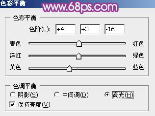 2、创建色彩平衡调整图层,对中间调,高光进行调整,参数设置如图6,7,效果如图8。这一步给图片增加黄绿色。