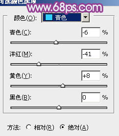 4、创建可选颜色调整图层,对红、黄、青、白进行调整,参数设置如图14 - 17,效果如图18。这一步给图片增加青绿色。