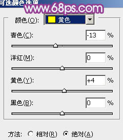 8、创建可选颜色调整图层,对黄、绿、青进行调整,参数设置如图22 - 24,确定后把图层不透明度改为:50%,效果如图25。这一步微调图片的绿色。