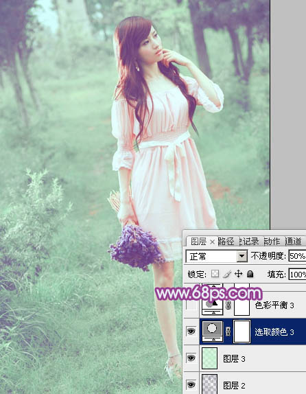 Photoshop给树林美女增加柔美的淡调青绿色(6)