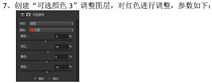 7、创建可选颜色调整图层,对红色进行调整,参数设置如下图。