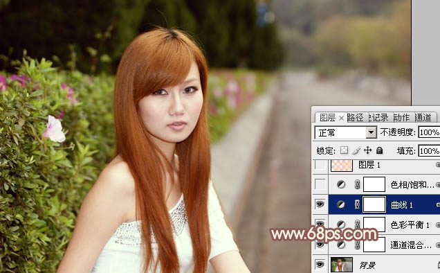 Photoshop给花坛边的美女增加甜美的黄褐色(4)