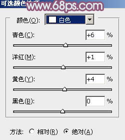 2、创建可选颜色调整图层,对黄、绿、白、黑进行调整,参数设置如图5 - 8,效果如图9。这一步给图片增加红褐色。