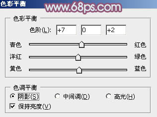 3、创建色彩平衡调整图层,对阴影、中间调、高光进行调整,参数设置如图10 - 12,效果如图13。这一步主要给图片的暗部增加褐色。