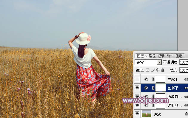 Photoshop给草原人物加上淡雅的青黄秋季色(4)