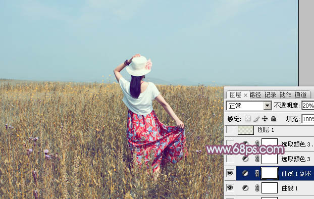 7、按Ctrl + J 把当前可选颜色调整图层复制一层,不透明度改为:20%,效果如下图。