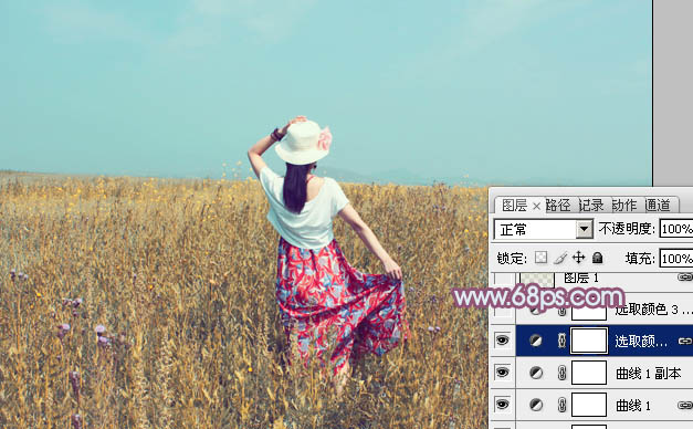 Photoshop给草原人物加上淡雅的青黄秋季色(6)
