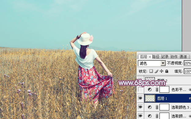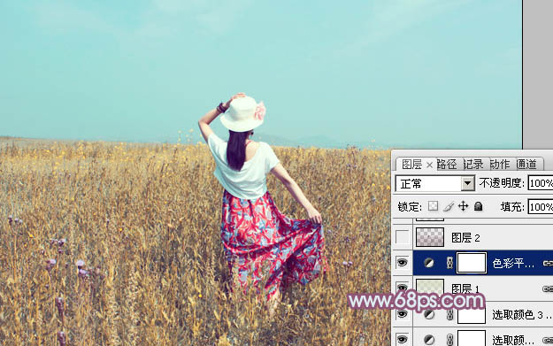 Photoshop给草原人物加上淡雅的青黄秋季色(7)