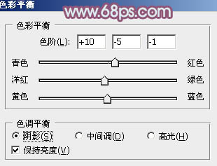 9、创建色彩平衡调整图层,对阴影、中间调、高光进行调整,参数设置如图26 - 28,效果如图29。这一步简单加强图片的层次感。
