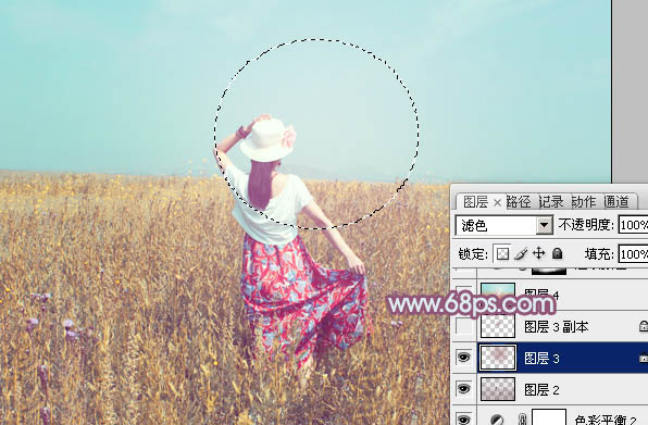 Photoshop给草原人物加上淡雅的青黄秋季色(8)