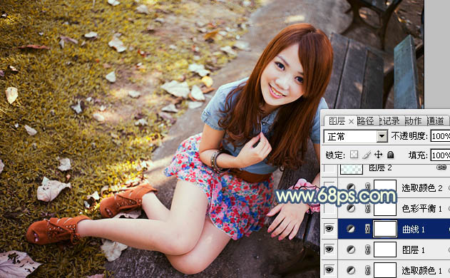 Photoshop打造甜美的橙黄色公园美女图片(3)