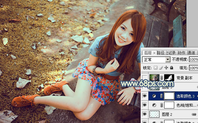 Photoshop打造甜美的橙黄色公园美女图片(5)