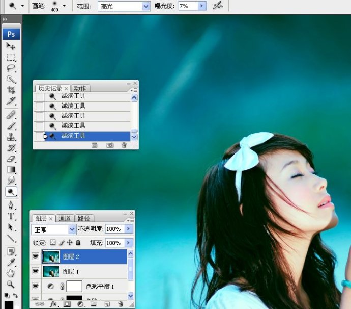 Photoshop给暮色中的美女加上清爽的甜美色(7)