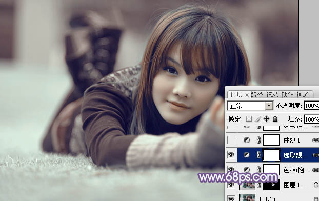Photoshop给冬季美女加上淡淡的韩系紫蓝色(3)