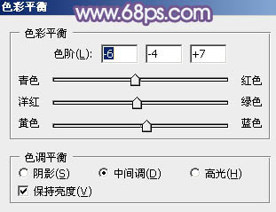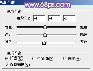 6、创建色彩平衡调整图层,对阴影、中间调、高光进行调整,参数设置如图16 - 18,效果如图19。这一步给图片的高光部分增加一些淡青色。