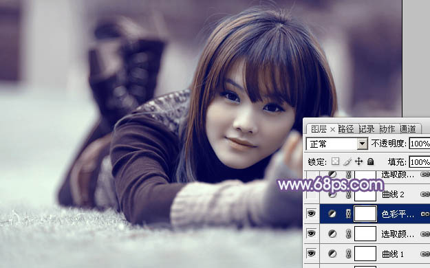 Photoshop给冬季美女加上淡淡的韩系紫蓝色(5)