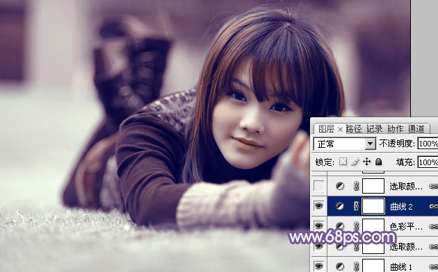 Photoshop给冬季美女加上淡淡的韩系紫蓝色(6)