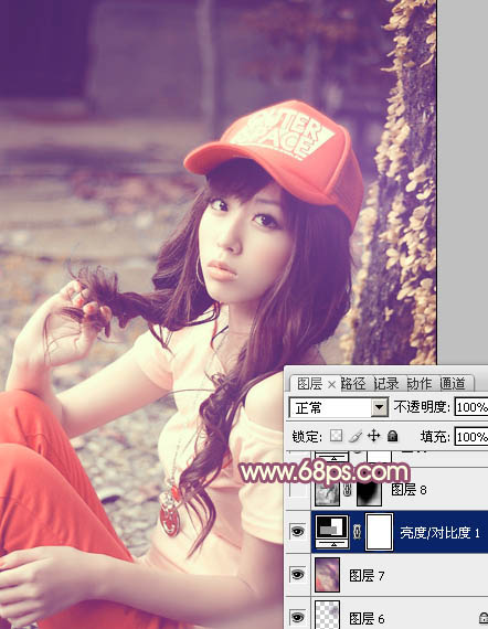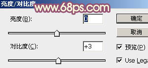 14、创建亮度/对比度调整图层,适当增加图片的对比度,参数及效果如下图。