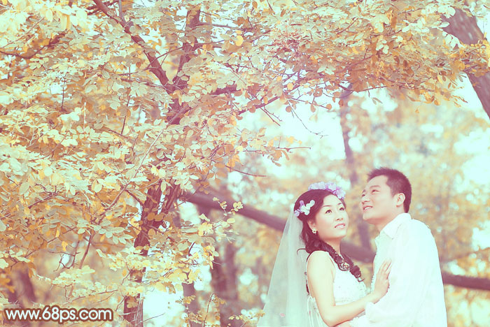 素材图片基本上为单色图片,转为暖色也是比较快的。用几个可选颜色调整图层逐步增加图片的暖色即可。后期微调一下整体明暗,再适当美化一下人物。
