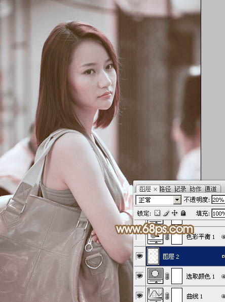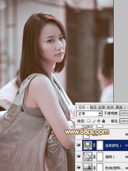 Photoshop给偏暗的街景美女加上韩系淡红色(4)
