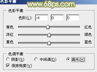 4、创建色彩平衡调整图层,对阴影,高光进行调整,参数设置如图11,12,效果如图13。这一步稍微增强图片高光部分的颜色。