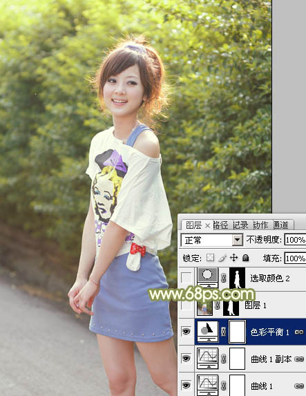 Photoshop给马路上的美女加上柔和的黄绿阳光色(4)