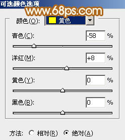 2、创建可选颜色调整图层,对黄、绿、黑进行调整,参数设置如图2 - 4,效果如图5。这一步主要把背景部分的颜色转为黄绿色。