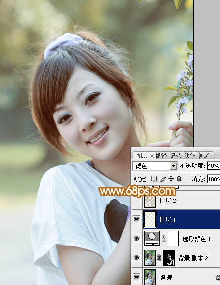 3、按Ctrl + Alt + 2 调出高光选区,新建一个图层填充淡黄色:#F5F7E2,混合模式改为“滤色”,不透明度改为:40%,效果如下图。这一步稍微提亮图片高光部分的颜色。