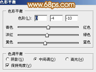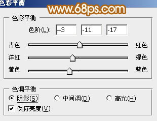 5、创建色彩平衡调整图层,对阴影、中间调、高光进行调整,参数设置如图8 - 10,效果如图11。这一步给图片增加黄褐色。