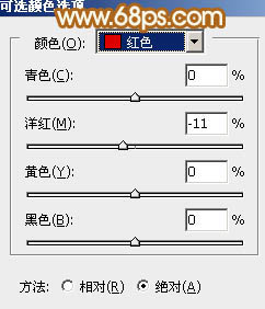 6、创建可选颜色调整图层,对红、黄、白、中性、黑进行调整,参数设置如图12 - 16,效果如图17。这一步主要增强图片高光部分的颜色。