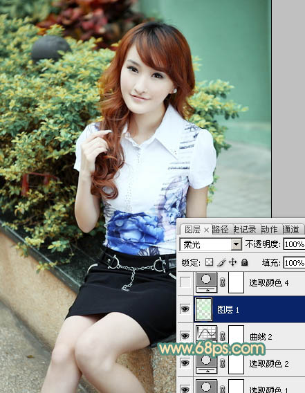 Photoshop给花坛边的美女图片加上甜美的黄绿色(4)