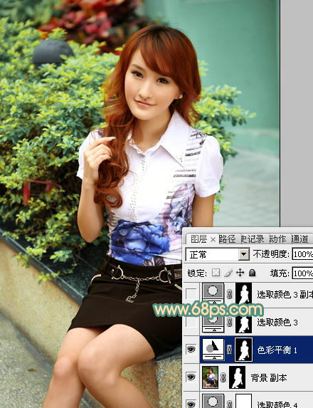 Photoshop给花坛边的美女图片加上甜美的黄绿色(6)
