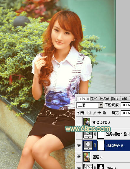 Photoshop给花坛边的美女图片加上甜美的黄绿色(9)