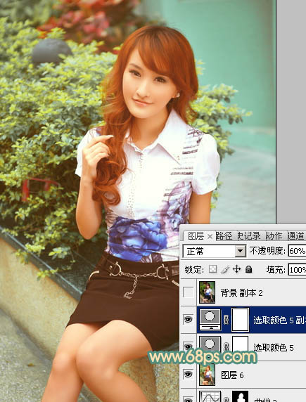 15、按Ctrl + J 把当前可选颜色调整图层复制一层,不透明度改为:60%,效果如下图。