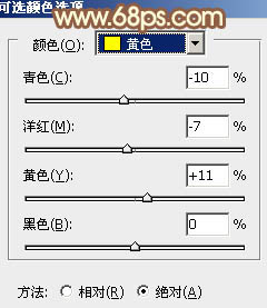 10、创建可选颜色调整图层,对黄、中性色进行调整,参数设置如图24,25,效果如图26。这一步给图片增加淡黄色。