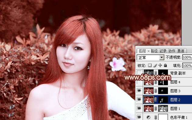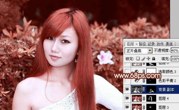 Photoshop给绿植边的美女图片加上纯美的橙红色(6)