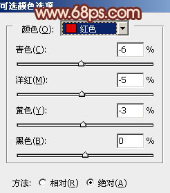 9、创建可选颜色调整图层,对红,黄进行调整,参数设置如图20,21,确定后把图层不透明度改为:50%,效果如图22。这一步微调图片的红色。