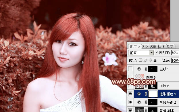 Photoshop给绿植边的美女图片加上纯美的橙红色(7)