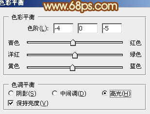 2、创建色彩平衡调整图层,对阴影、中间调、高光进行调整,参数设置如图6 - 8,效果如图9。这一步给图片增加一些黄褐色。