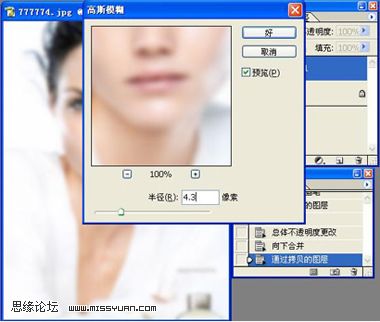 7、执行滤镜-模糊-高斯模糊。把半径设置成4.3左右。当然不照这个数据也可以。自己看着效果,灵活运用。