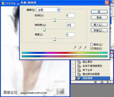 8、执行图像-调整-色相/饱和度调到-50,大家也可以试着调至正50看看效果。
