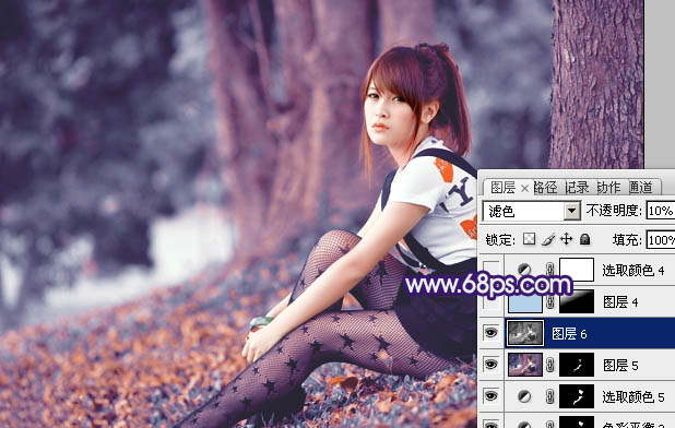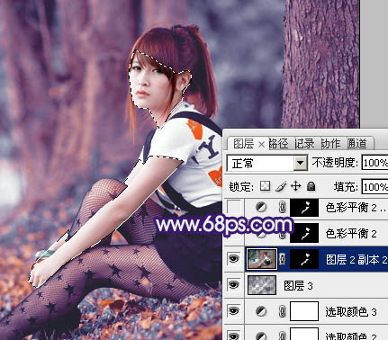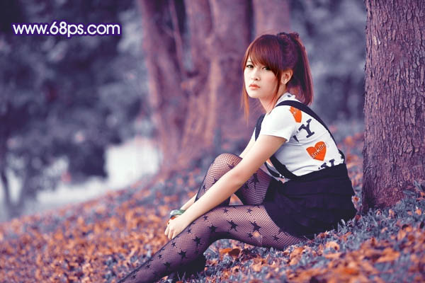 Photoshop给树林人物图片加上古典暗调蓝红色(7)