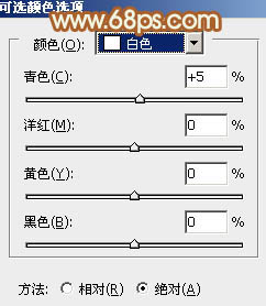 2、创建可选颜色调整图层,对黄、绿、白、中性色进行调整,参数设置如图5 - 8,效果如图9。这一步给图片增加黄褐色。