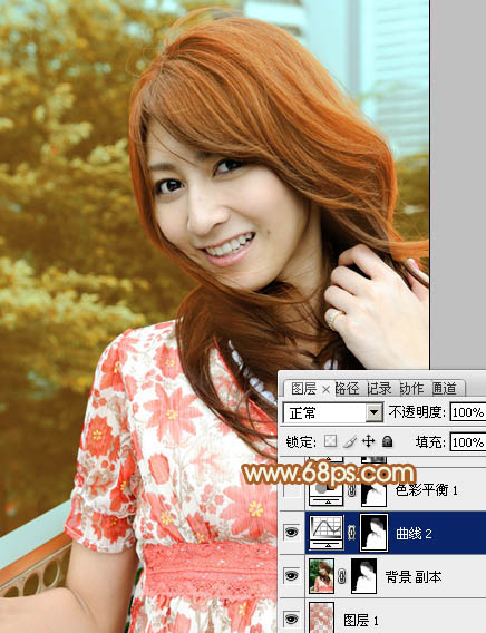 Photoshop给外景人物加上流行的韩系红褐色(5)
