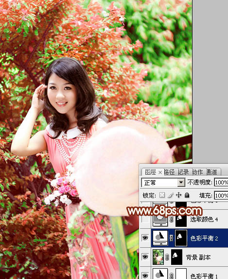 Photoshop打造柔美的淡调橙绿色外景美女图片(6)