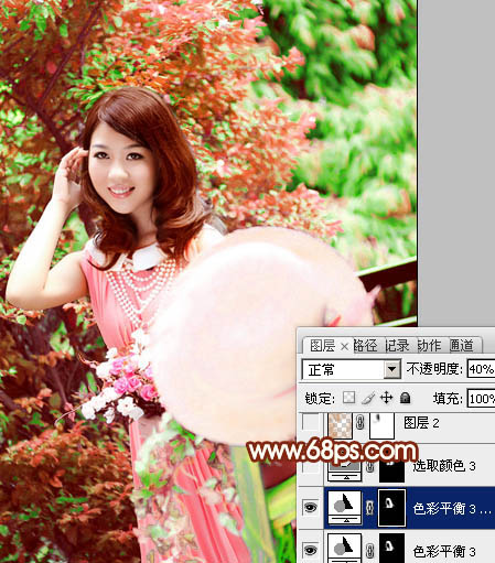 9、按Ctrl + J 把当前色彩平衡调整图层复制一层,不透明度改为:40%,效果如下图。