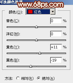 10、调出当前图层蒙版选区,创建可选颜色调整图层,对红、黄、黑进行调整,参数设置如图23 - 25,效果如图26。这一步把头发稍微调亮一点。