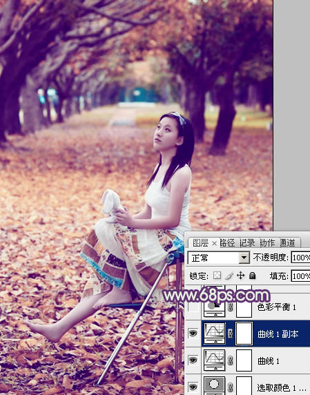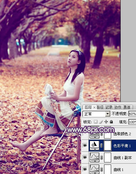 Photoshop打造漂亮的橙紫色树林写真人物图片(4)